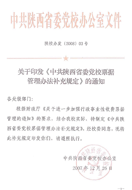 关于印发《中共陕西省委党校票据管理办法补充规定》的通知
