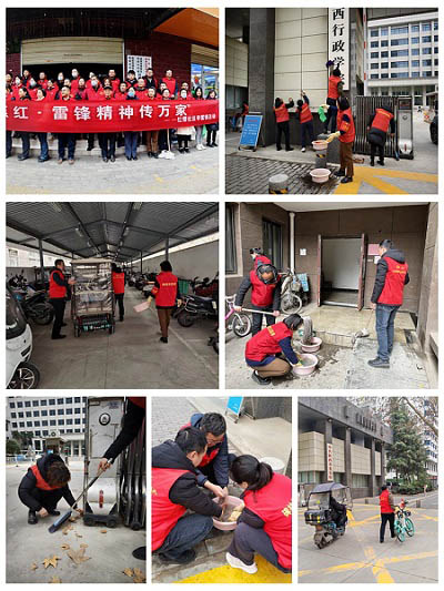 活动期间,党支部联合红缨社区进行了“学雷锋”志愿服务活动宣传动员,回顾了雷锋同志的光辉事迹,重温了雷锋同志无私奉献,全心全意为人民服务的崇高精神,并对志愿服务活动进行了安排部署。随后,青年志愿者们对友谊校区路边乱停乱放的共享单车进行了整理,对校门卫生进行了清扫,对学校自行车棚秩序进行了规整,宣传张贴了电动自行车违规停放充电法律责任通告,并对家属楼卫生死角进行了清理。
