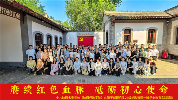 为庆祝中国共产党成立104周年,6月28日,2024级在职干部研究生党政一班以“赓续红色血脉 砥砺初心使命”为主题,走进被誉为“红色桥梁”的八路军西安办事处旧址,开展沉浸式党史教育实践活动,以实地研学的方式感悟革命精神,向党的生日致敬。