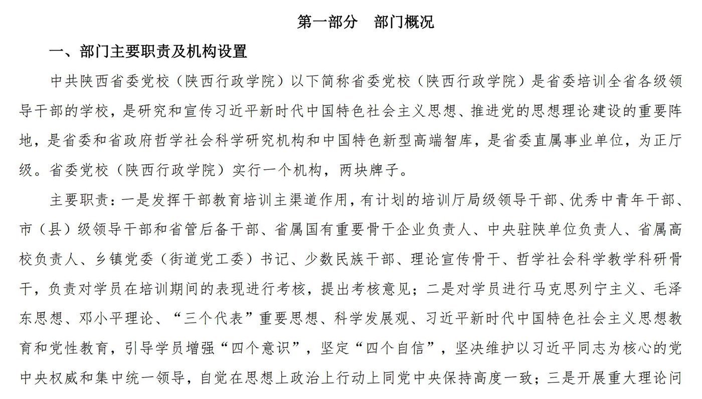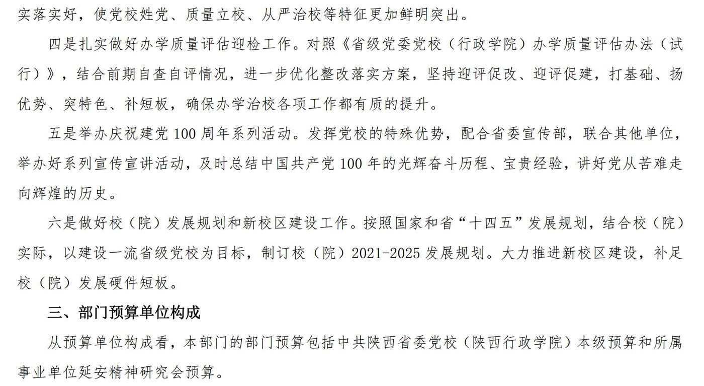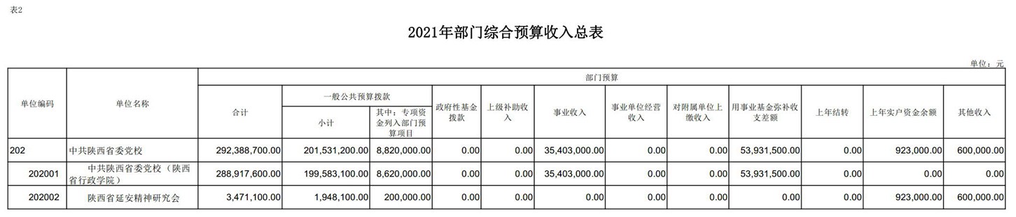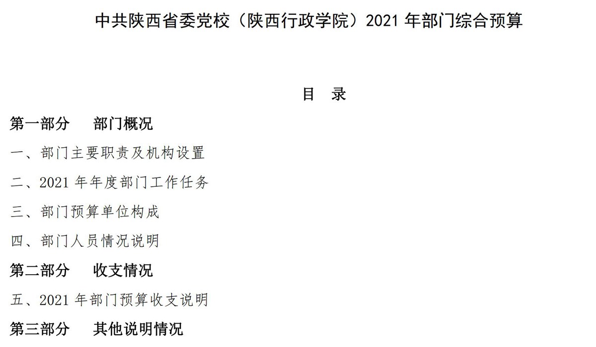 按照《中华人民共和国政府信息公开条例》规定要求,现将中共陕西省委党校(陕西行政学院)2021年度部门预算向社会予以公开。