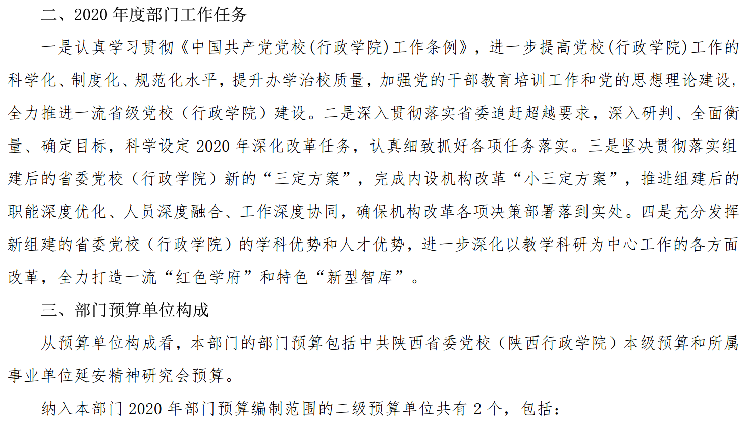 按照《中华人民共和国政府信息公开条例》规定要求,现将中共陕西省委党校(陕西行政学院)2020年度部门预算向社会予以公开。