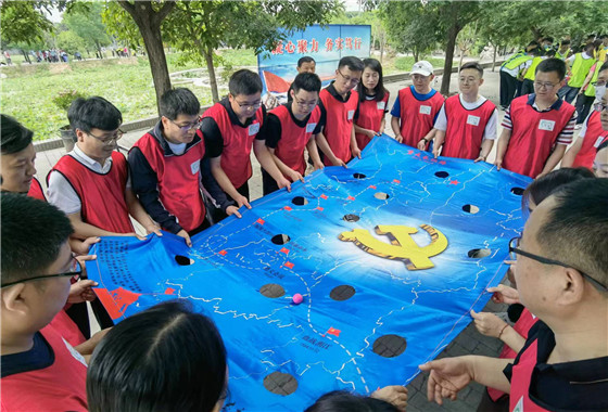 当天早晨9:20,车辆到达南五台拓展教学实践基地。按照分组安排,经过起队名、画战旗、定队歌、摆造型等紧锣密鼓的筹备,无敌队、冲锋队、快乐队、雄鹰队四个战队迅速组成。各战队展示亮相之后,大家精神饱满、信心百倍地接受了重走长征路、鼓动人心、合力建塔、目标市场、生命动力圈五项半军事化的团建拓展训练。