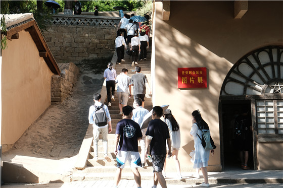 随后,我们先后参观了枣园革命旧址和杨家岭革命旧址。这是曾经是中共中央所在地,毛泽东等老一辈党中央领导人曾在这里工作生活。一片绿油油的菜地、一孔孔简陋的窑洞,一幢幢砖石建筑,还原了当时艰难环境下党的先辈们精耕细作、激扬文字、运筹帷幄的历史画面。中国共产党人自己动手、丰衣足食,全心全意为人民服务,与人民群众建立了亲密的鱼水关系,将马克思主义运用于革命实践,实现了马克思主义中国化的第一次飞跃。十三年延安革命培育了永放光芒的延安精神,在延安精神的滋养下中国共产党逐步走向成熟,从局部执政走向全国执政。师生党员在先辈们的雕像前重温入党誓词,铮铮誓言、拳拳初心,心灵受到洗礼,信仰得到升华。