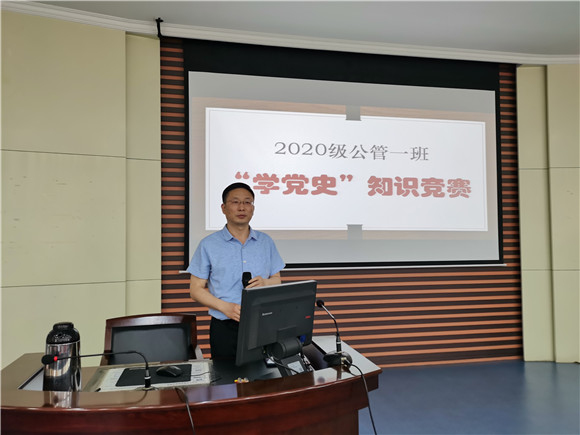 比赛开始前,班主任陈永宏老师对公管一班建党100周年系列活动开展给予说明,并鼓励各位学员要认真学习、扎实履职、恪尽职守。